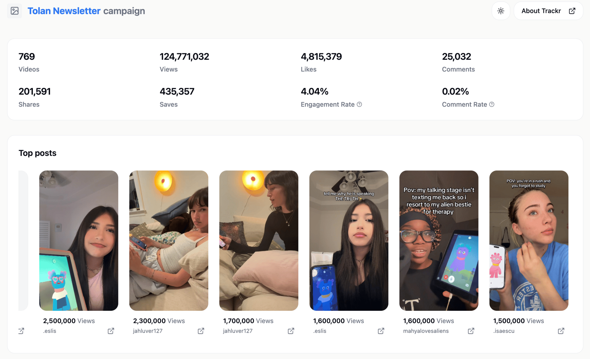 Trackr | UGC ambassador campaign analytics tool | ugctrackr.com