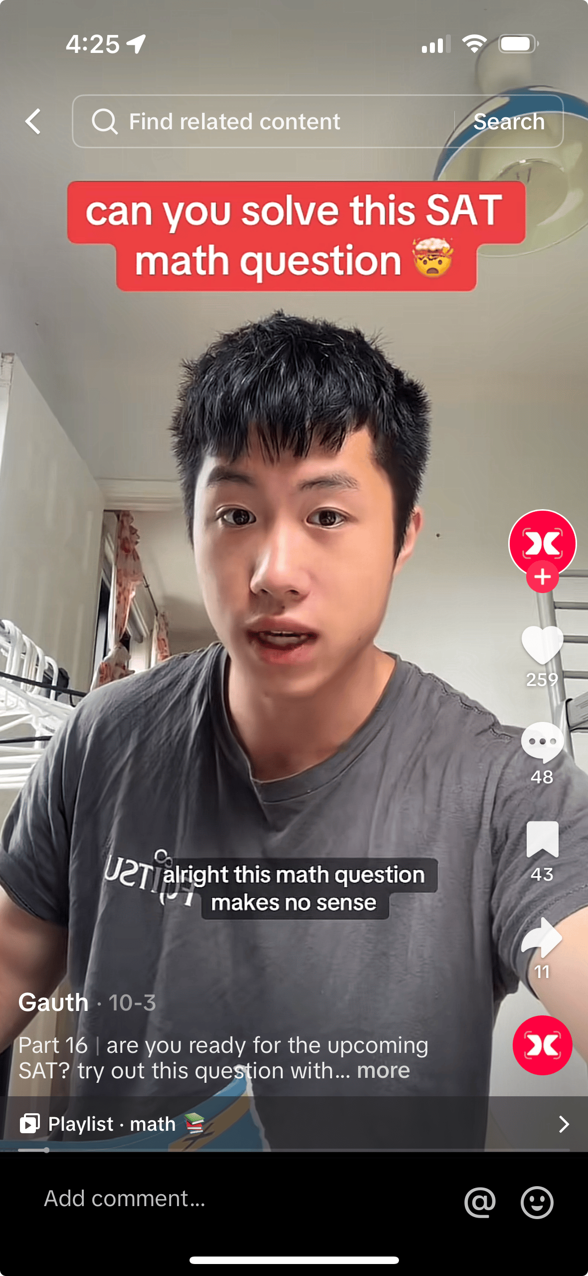 Hook: “alright, this math question makes no sense” + “can you solve this SAT match question 🤯”