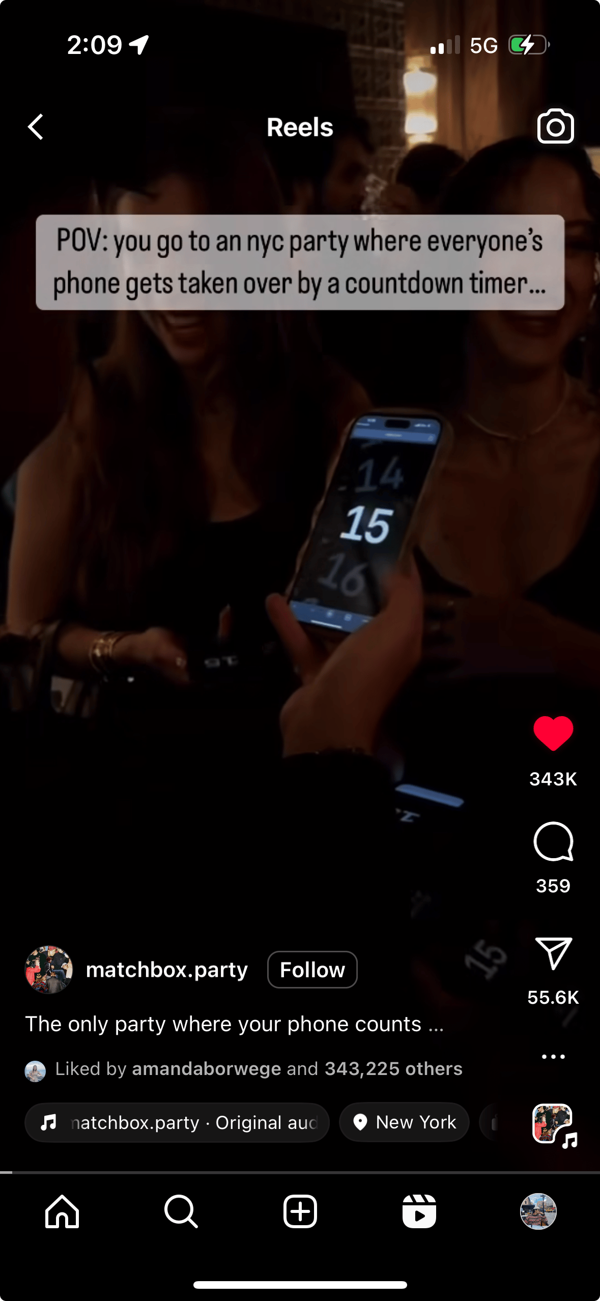 Hook: “POV: you go to an NYC party where everyones phone gets take over by a countdown timer…”