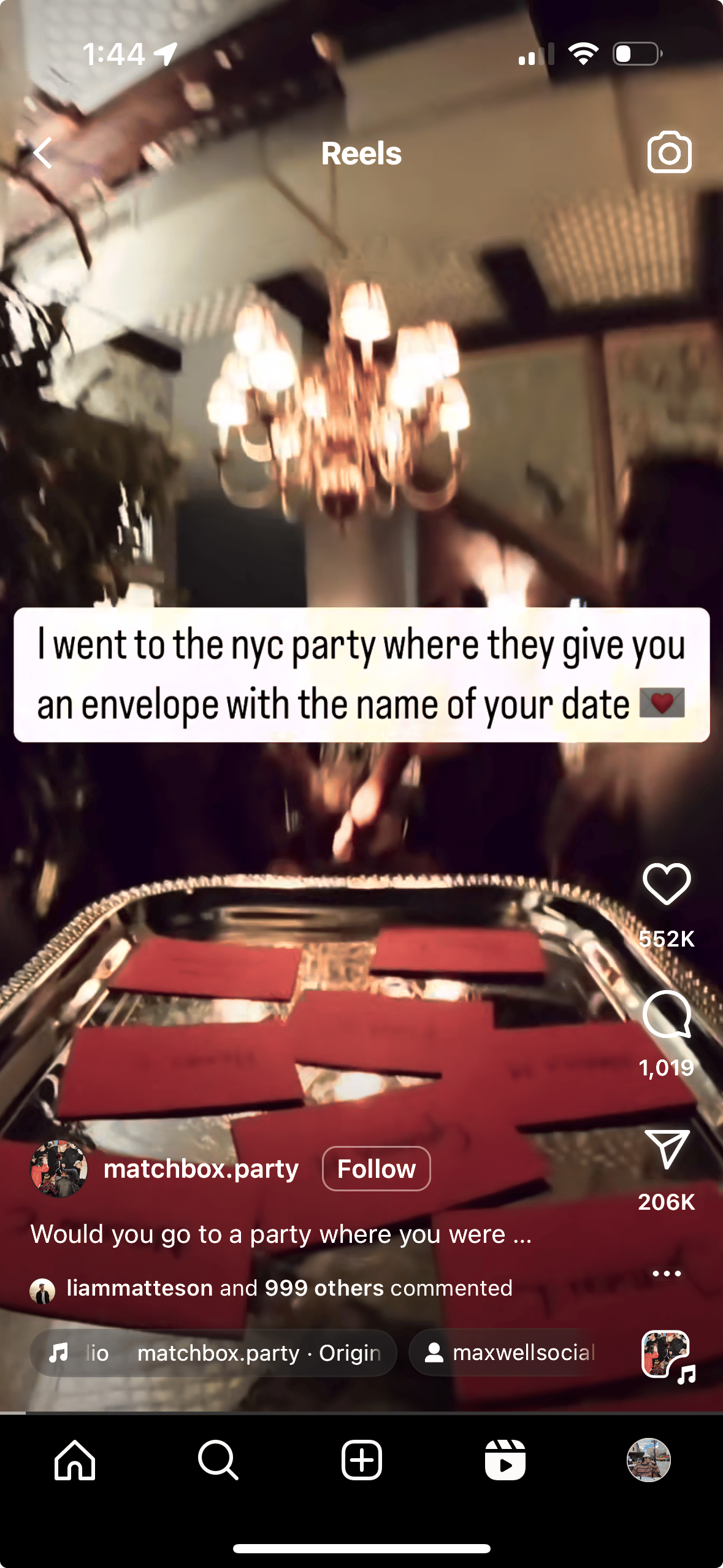 Hook: ”I went to the NYC party where they give you an envelope with the name of your date”