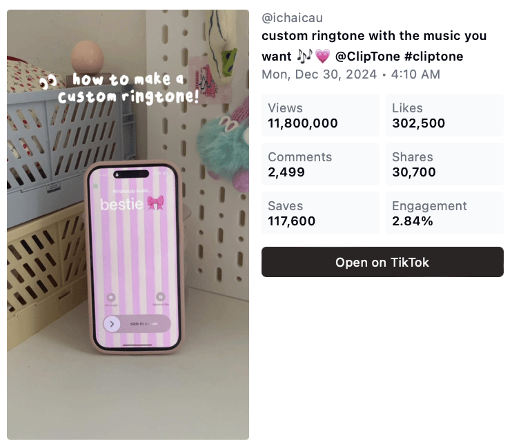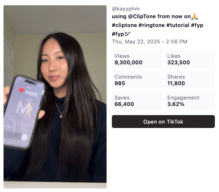 The Genius Problem-Solution Positioning: ClipTone didn't just create another ringtone app, they identified that iPhone users feel—trapped paying for basic personalization. By connecting viral TikTok culture to this frustration, they created content that felt like "life hacks" rather than app promotion.