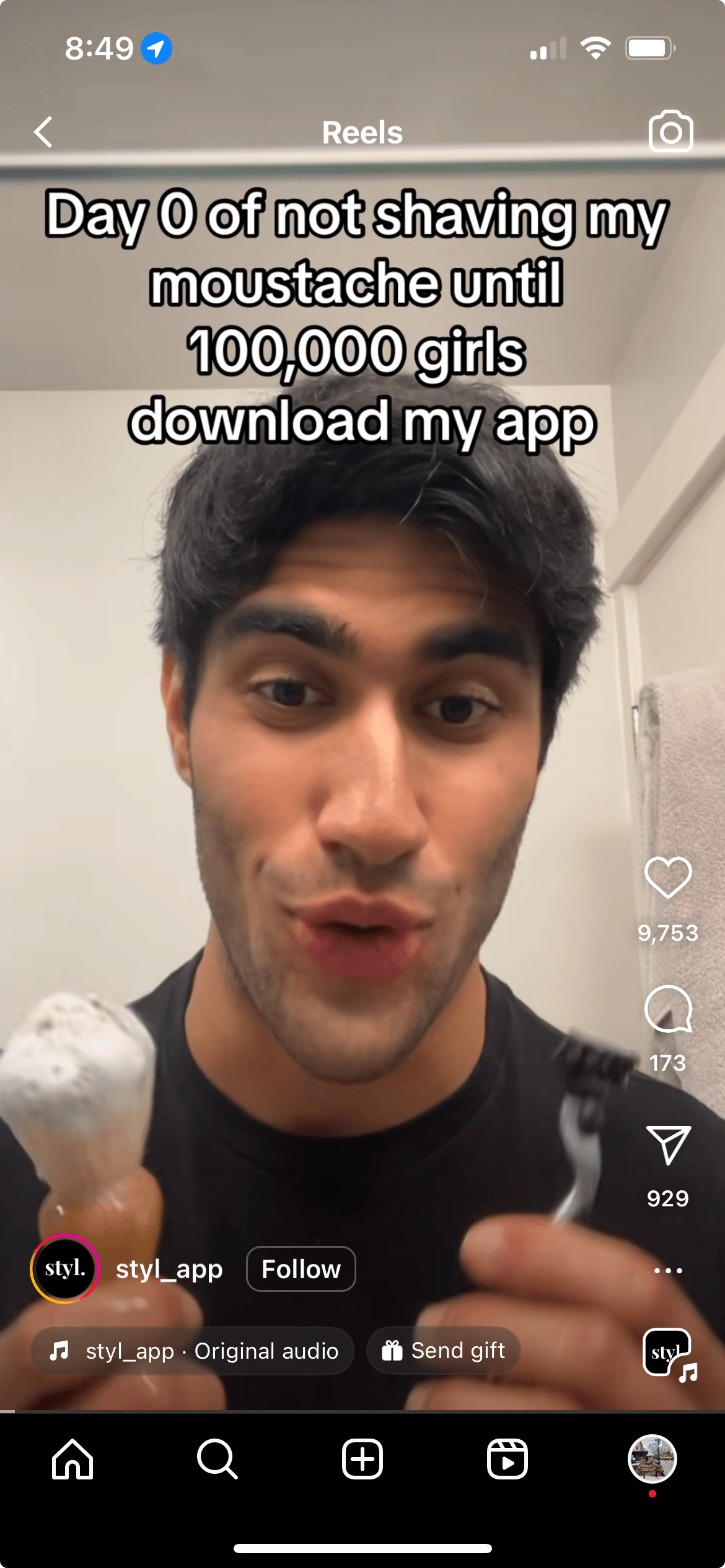 🎬 Day “x” of not shaving my mustache until 100K girls download my app: 1.1M Views, 10K Likes, 929K Shares