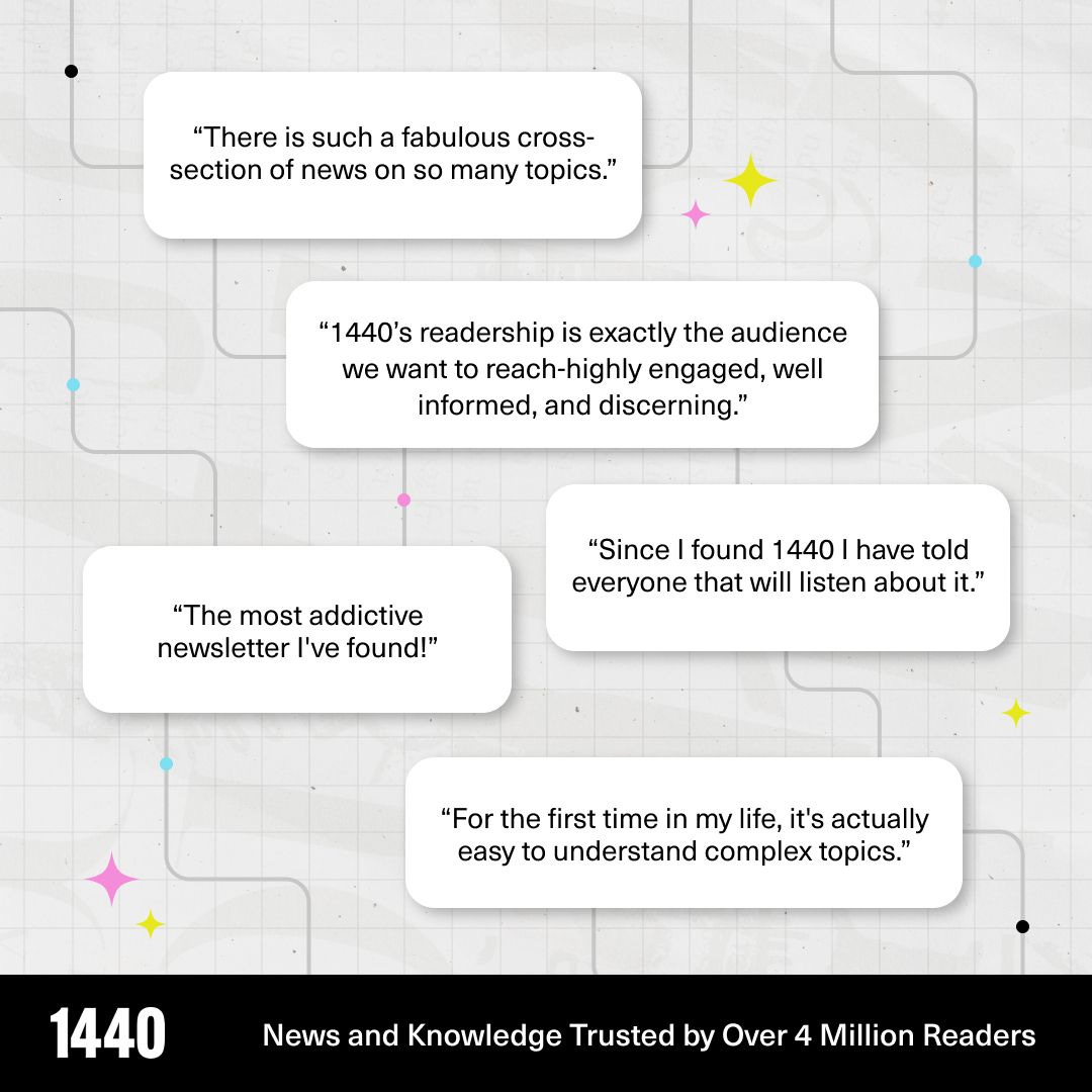 Join over 4 million Americans who start their day with 1440 – your daily digest for unbiased, fact-centric news. From politics to sports, we cover it all by analyzing over 100 sources. Our concise, 5-minute read lands in your inbox each morning at no cost. Experience news without the noise; let 1440 help you make up your own mind. Sign up now and invite your friends and family to be part of the informed.