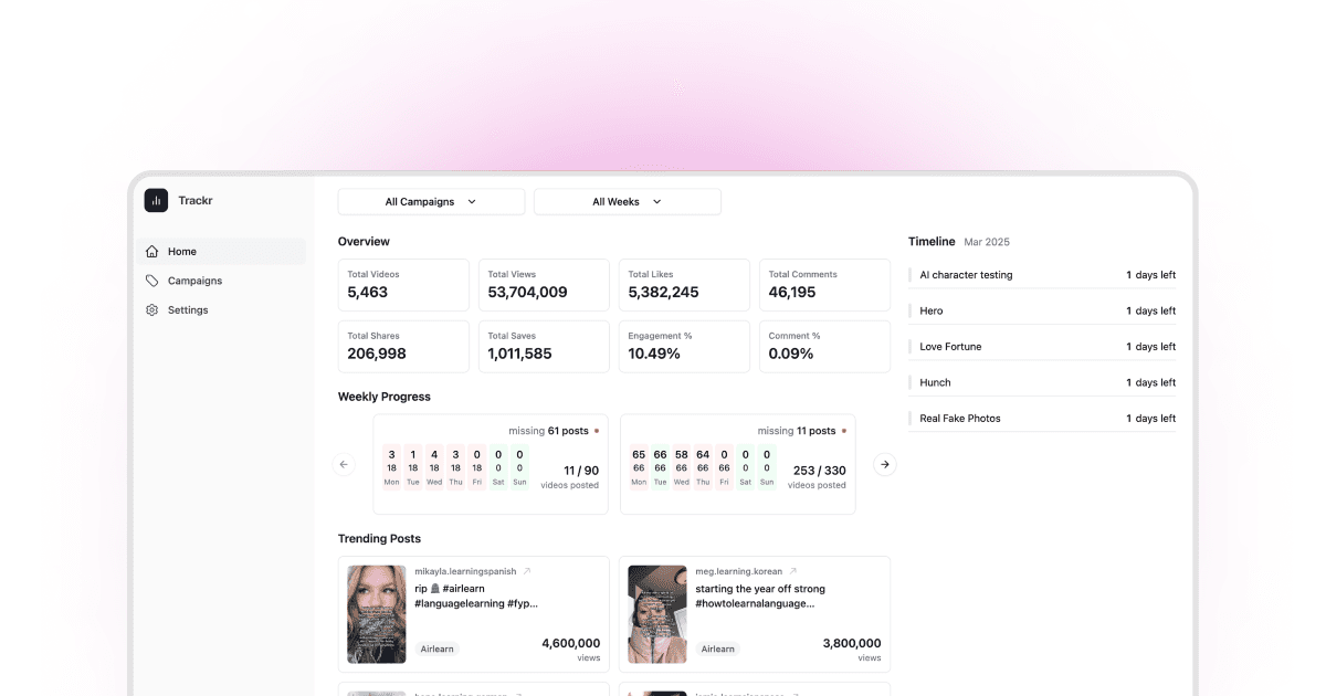 Tracker provides features such as comment tracking and view tracking, making it easier than ever to grow online. We built Trackr for ourselves and want to share access to our internal tracking tool we’ve used to gain over 100m+ views. Take the next step in your growth today!